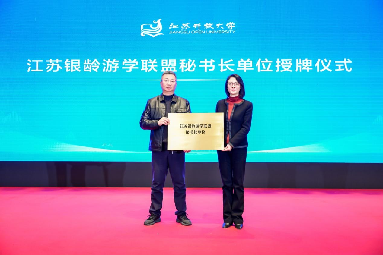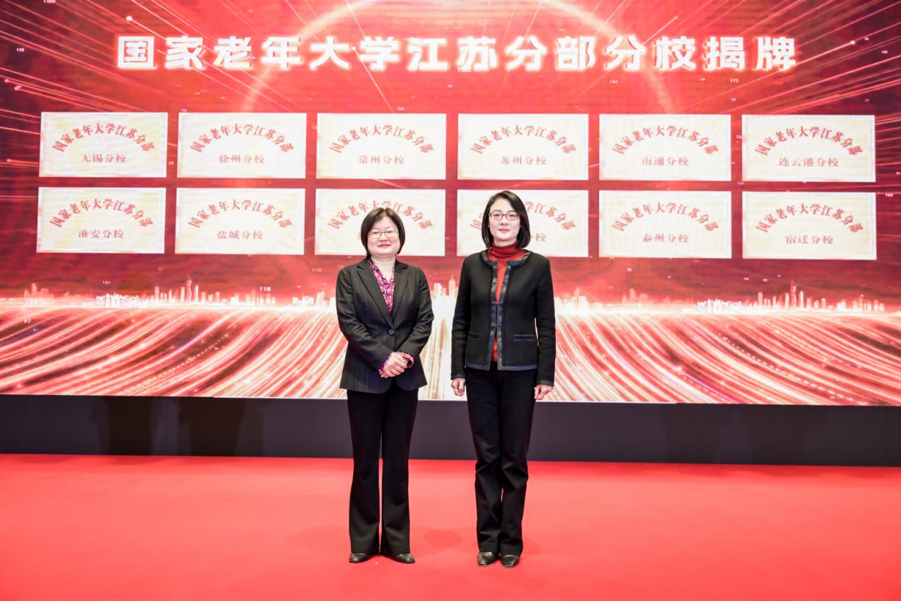 会议还举行了国家老年大学江苏分部分校、分院揭牌仪式,以及江苏省养教融合研究中心人工智能健康领域联合研发中心(联合实验室)授牌仪式和江苏银龄游学联盟秘书长单位授牌仪式,标志着江苏老年教育在体系构建、资源整合、服务创新等方面迈出了新的坚实的步伐。