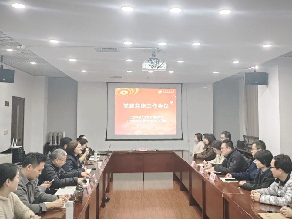 为深化党建引领,构建资源共享、优势互补、协同发展的党建工作新格局,老年发展学院老年项目管理与社会服务党支部与江苏华博在线传媒有限责任公司第三党支部开展党建共建活动。学院党总支书记章琼,副书记周振华、学院副院长孙旭、孙培松、全体党员参加了本次活动。