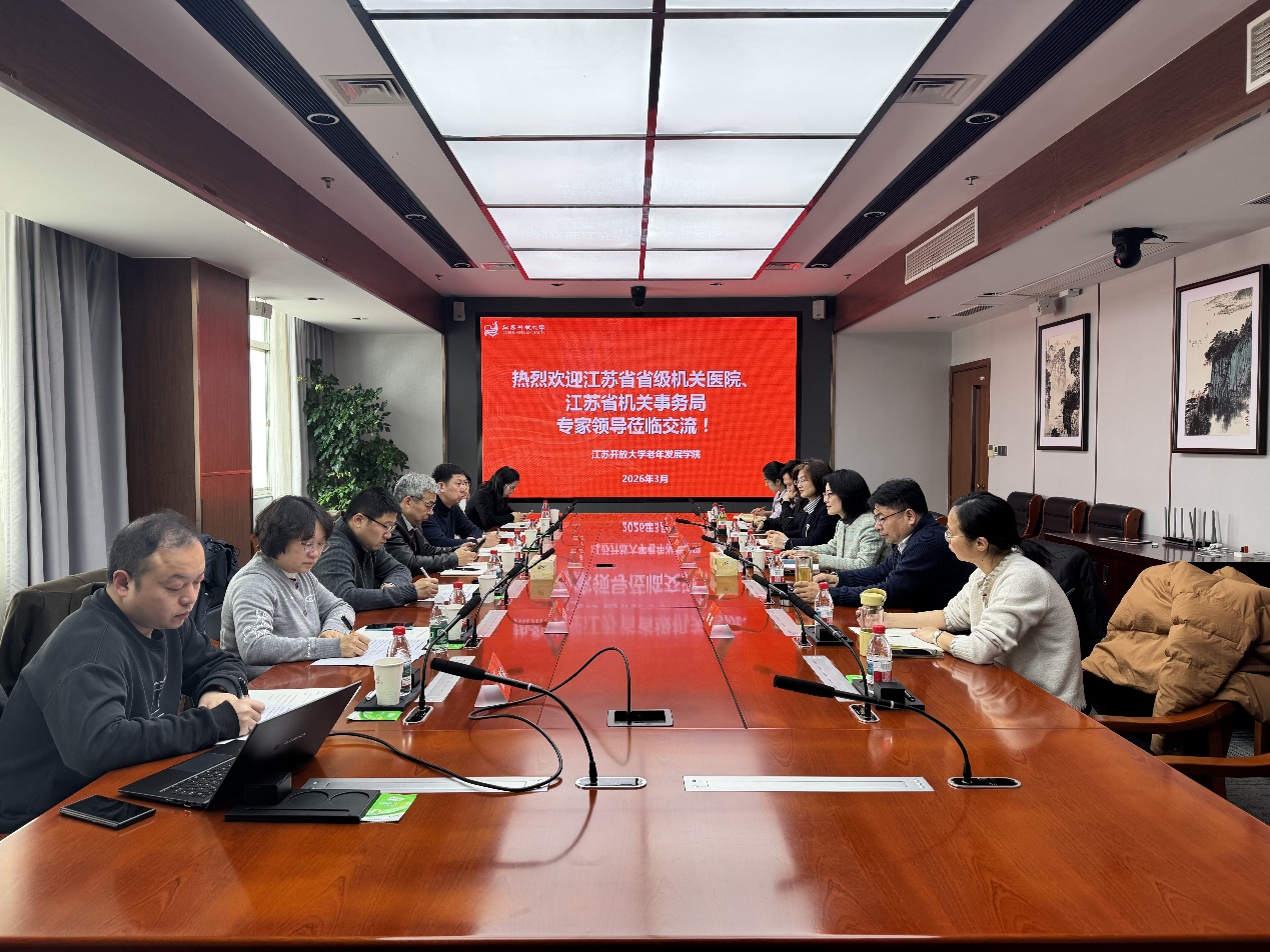 3月19日,江苏省机关事务管理局综合处处长徐晓明、副处长卜岩、江苏省省级机关医院副院长、党委委员桂波等一行到访我校,各方围绕构建健康生活生态圈、推进老年健康与养教融合开展座谈交流。校党委常委、副校长杨羽出席会议,老年发展学院负责人参加座谈。
